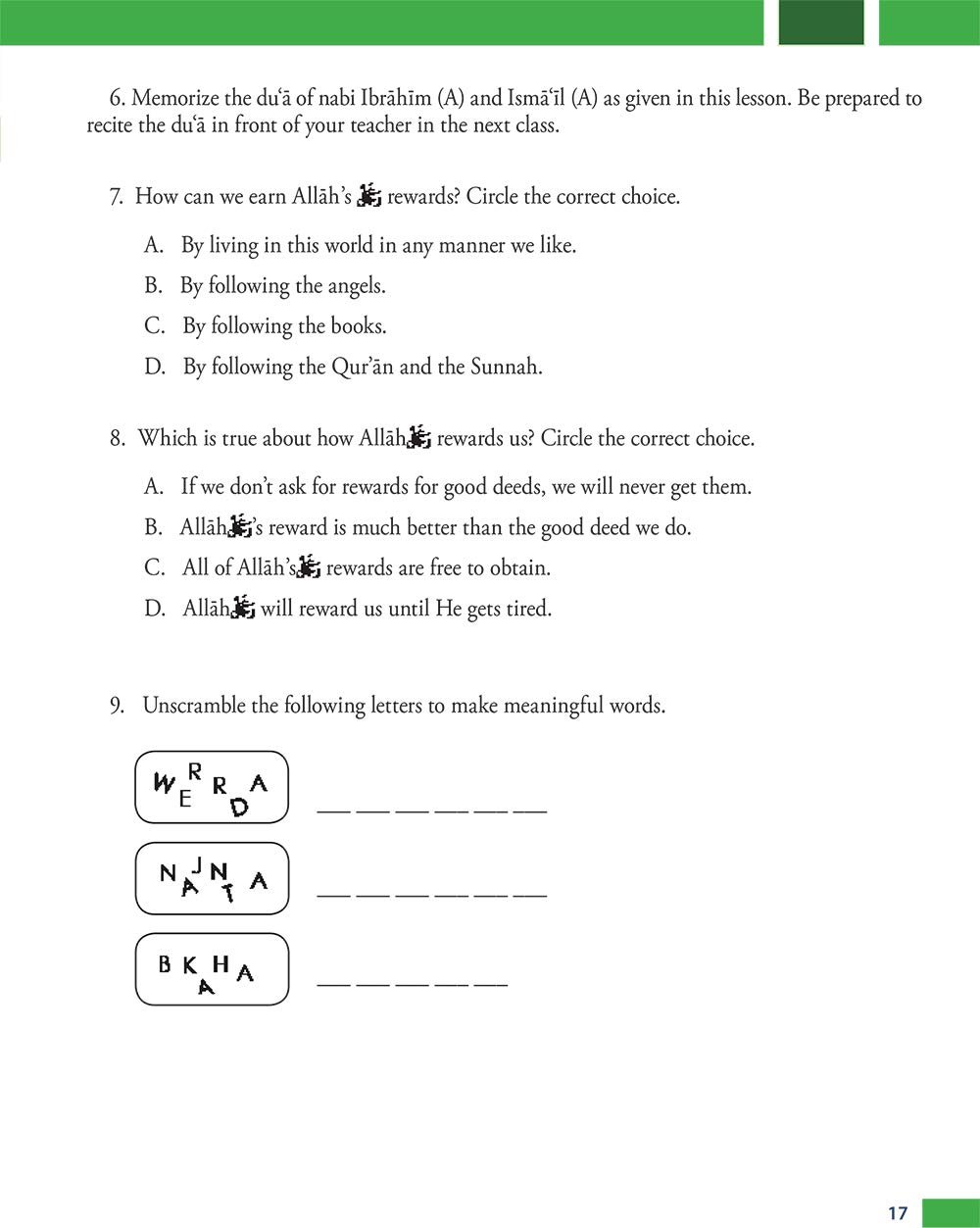Please note: This is the revised and enlarged edition of Islamic Studies Level 4 book. All lessons in this book are thematically presented in distinct units. Topics in the Level 4 book are diverse and are presented with greater detail. Learning about All h remains an important focus of the entire series, as well as the life of Nabi Muhammad. The unit on how Islam changed Arabia takes a closer look at the life of Nabi Muhammad before and after receiving divine revelations. With the ritual duties becoming obligatory to students in this age group, several topics on the Fiqh of sal t are introduced. The lives of the four Khal fas are covered in greater detail in order to explain their contributions to Islam. Several moral-building lessons are also included.