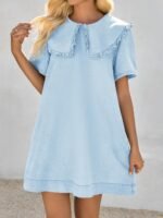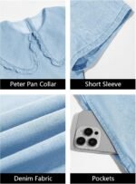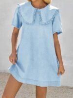 Wenrine Womens Summer Denim Mini Dress Oversized Peter Pan Collar Short Sleeve Casual Flowy Babydoll Jean Dresses