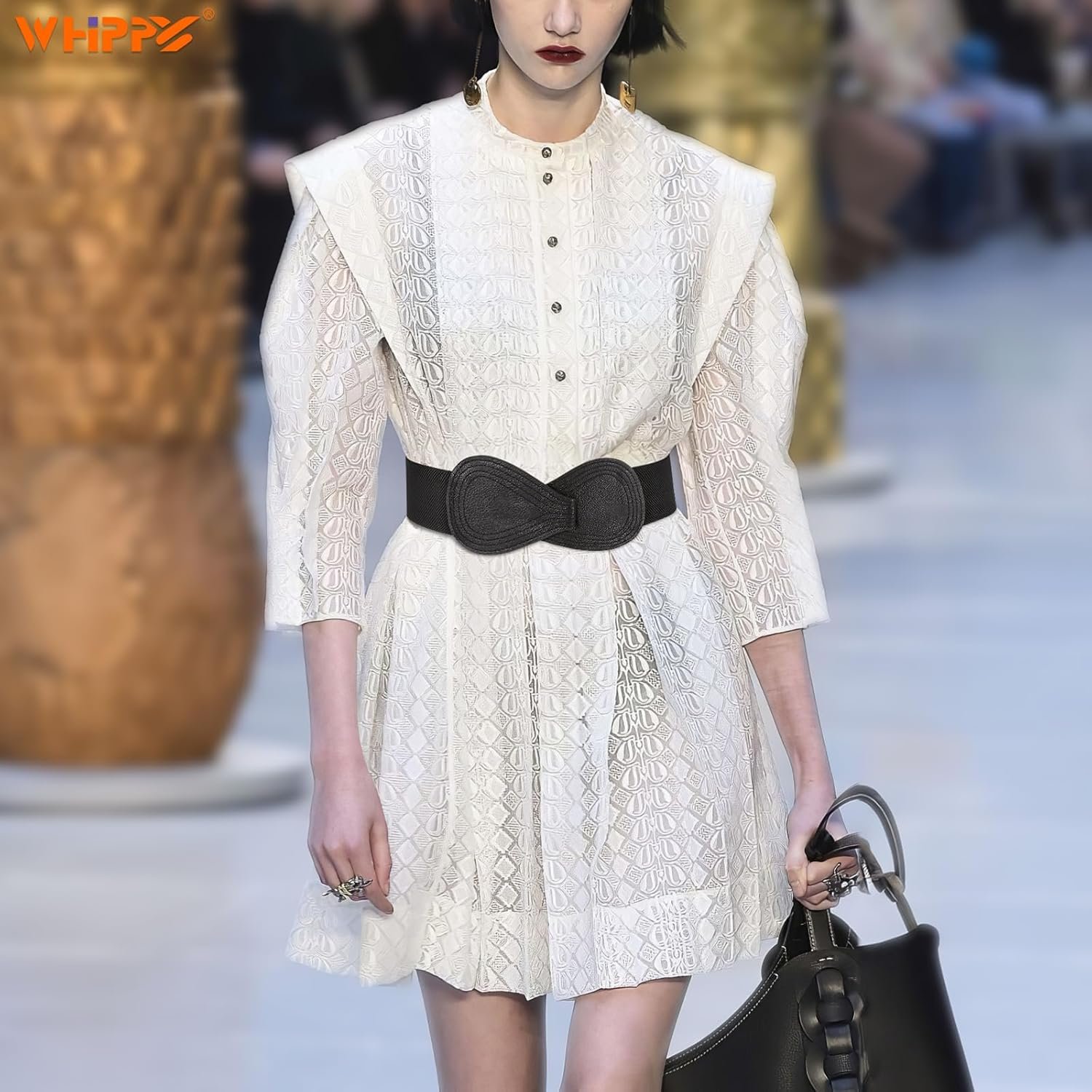 WHIPPY Women Wide Elastic Belt Ladies Stretch Dress Belt Fashion Waistband with 8-shaped Interlock Leather Buckle
