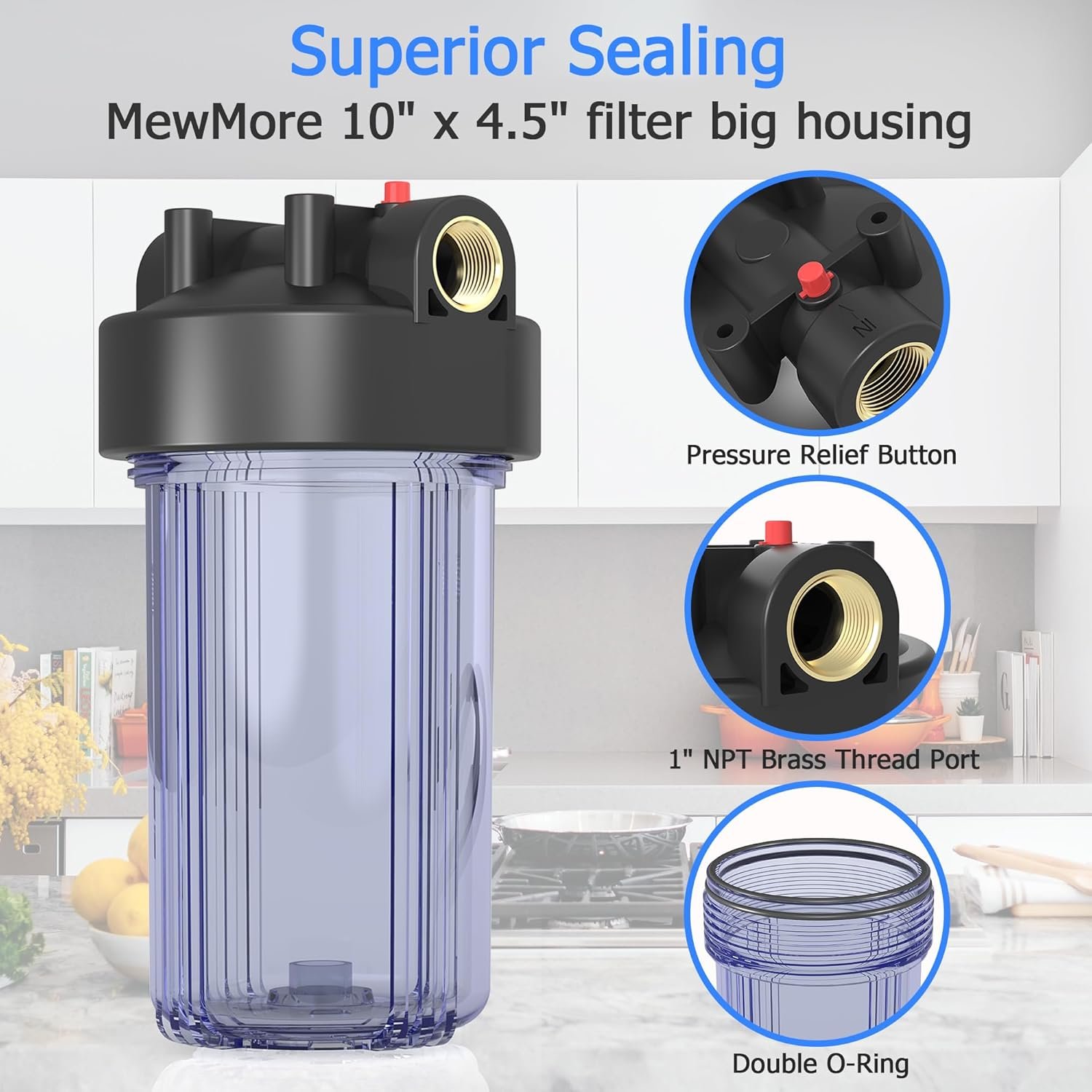 MewMore WHT10 10″x4.5″ Whole House Water Filter Housing (Clear Housing)