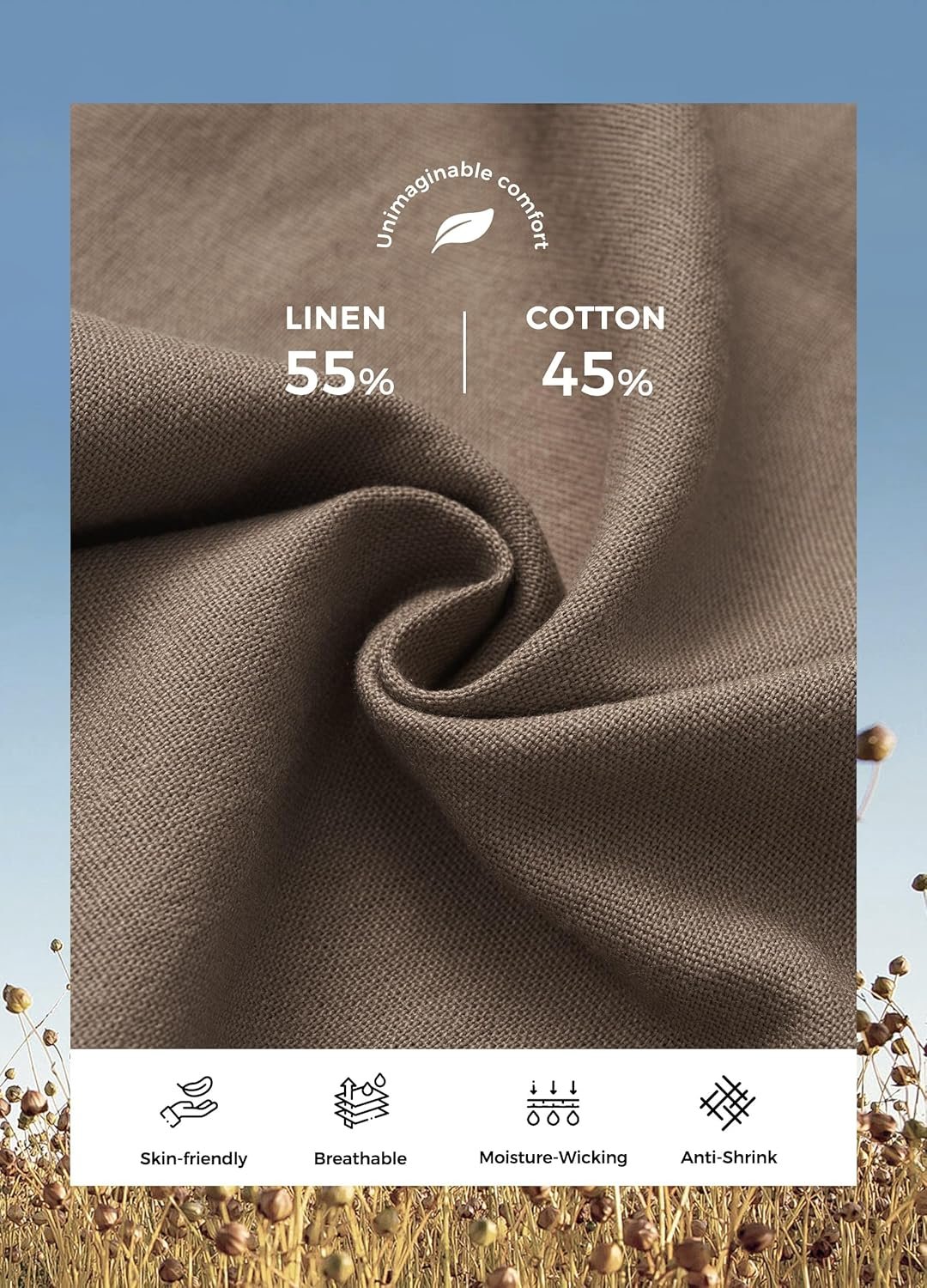 The blend of cotton and linen creates a soft, gentle texture that feels luxurious against the skin. Suitable for a wide range of climates and occasions, from breezy summer days to cozy indoor lounging. Pre-shrinking treatment to avoid shrinkage.