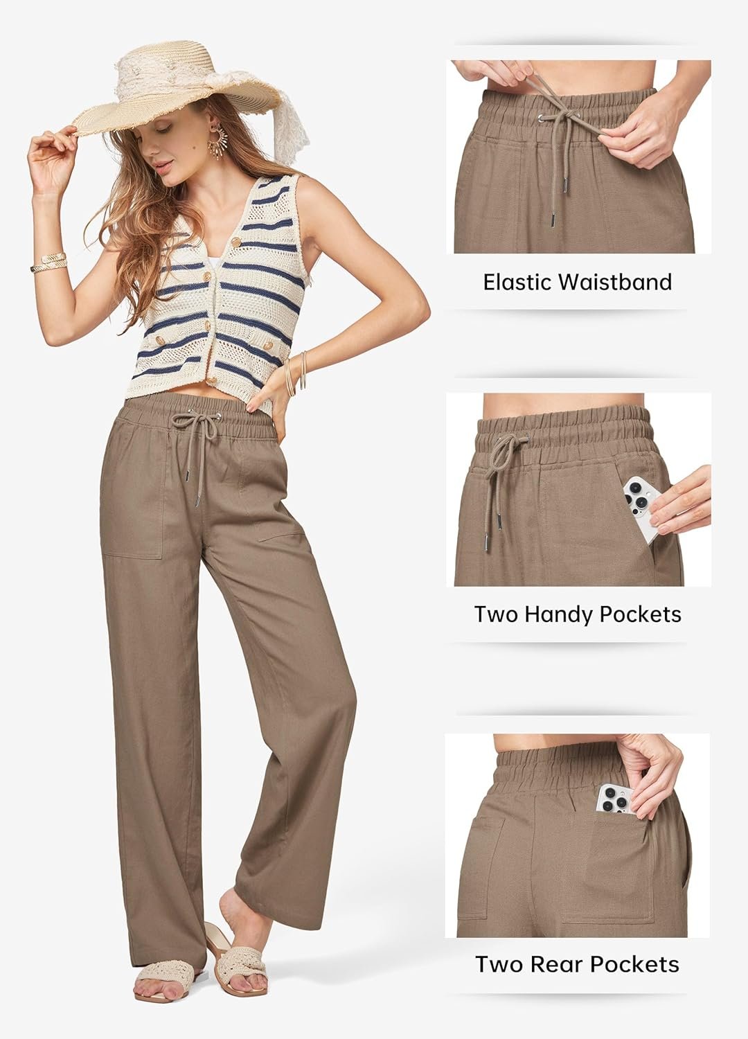Willit Women Linen Pants Wide Leg Casual Palazzo Pants Cotton Linen Lounge Beach Summer Pants with Pockets 29″/31″/ 33″