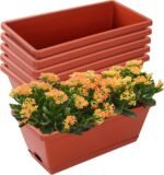 WINDOW BOX PLANTERS DIMENSIONS – Includes pack rectangular plastic planters. The size of plastic flower planters: L16.6 x W7 x H5.9 inches, large enough to support any projects and ideas. Great for herbs, flowers, foliage, grass, cactus, succulents, ferns, arborvitae and more.