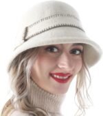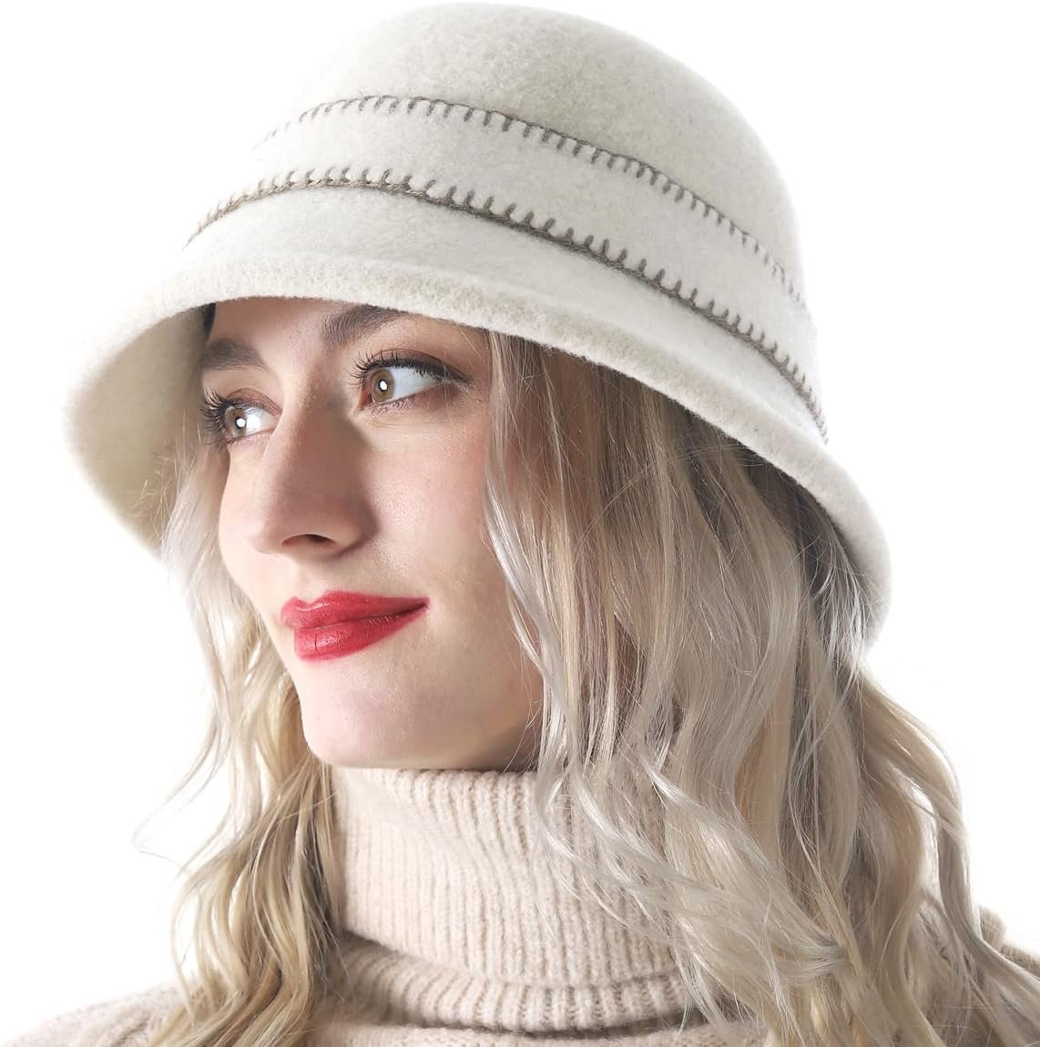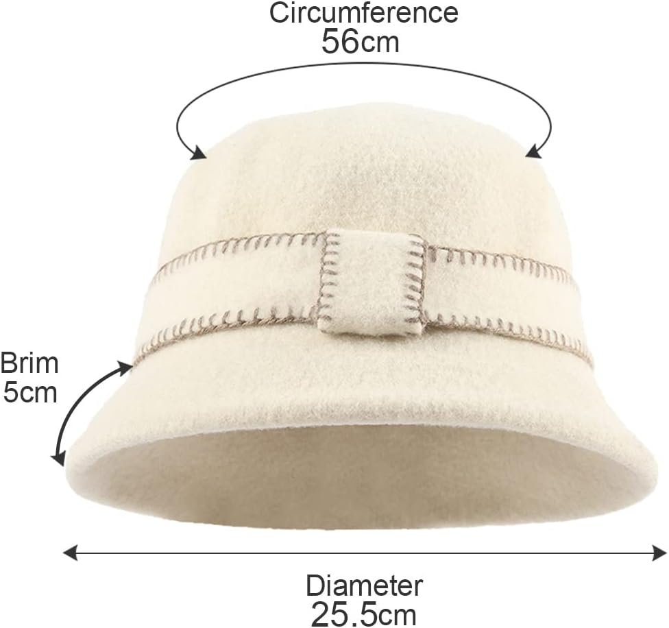 Women Elegant Winter Wool Bucket Hat 1920s Vintage Cloche Bowler Hats