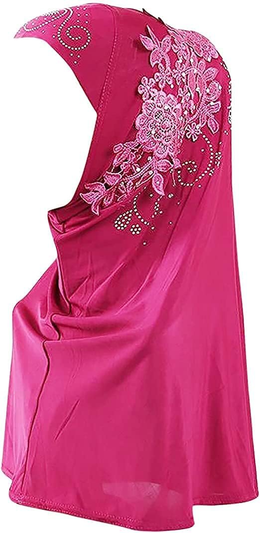 Women Floral Muslim Chiffon Hijab Instant Head Wrap Long Head Wrap Scarves Full Cover One Piece Head Scarf Lace Flower Hijab