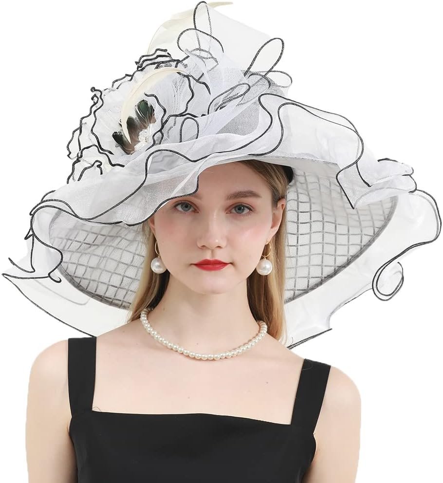 Women Party Church Derby Top Hats Organza Sun Visor Cap Ladies Flowers Fascinators Big Wide Brim Fedoras