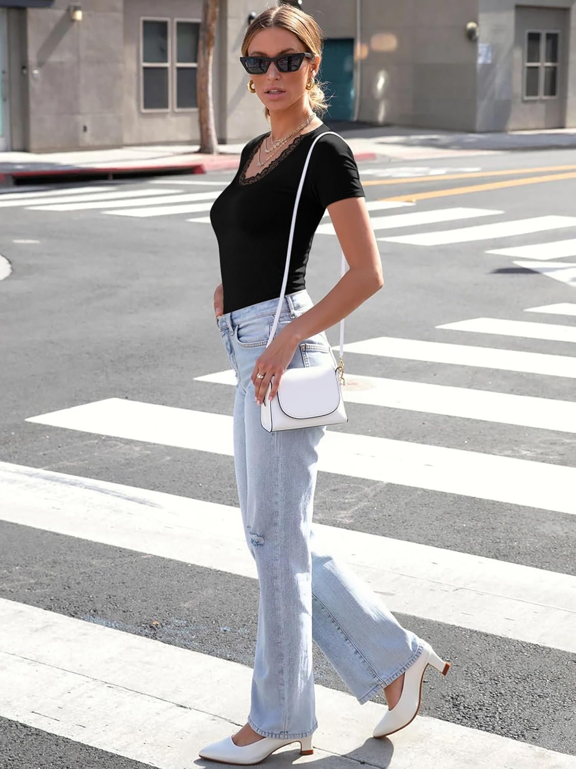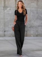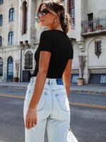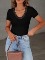 Be the first to review “Women Short Sleeve Lace V Neck Shirts Ribbed Knit Fitted Basic Tee Tops Business Dressy Casual Summer Blouses T-Shirt” Cancel reply