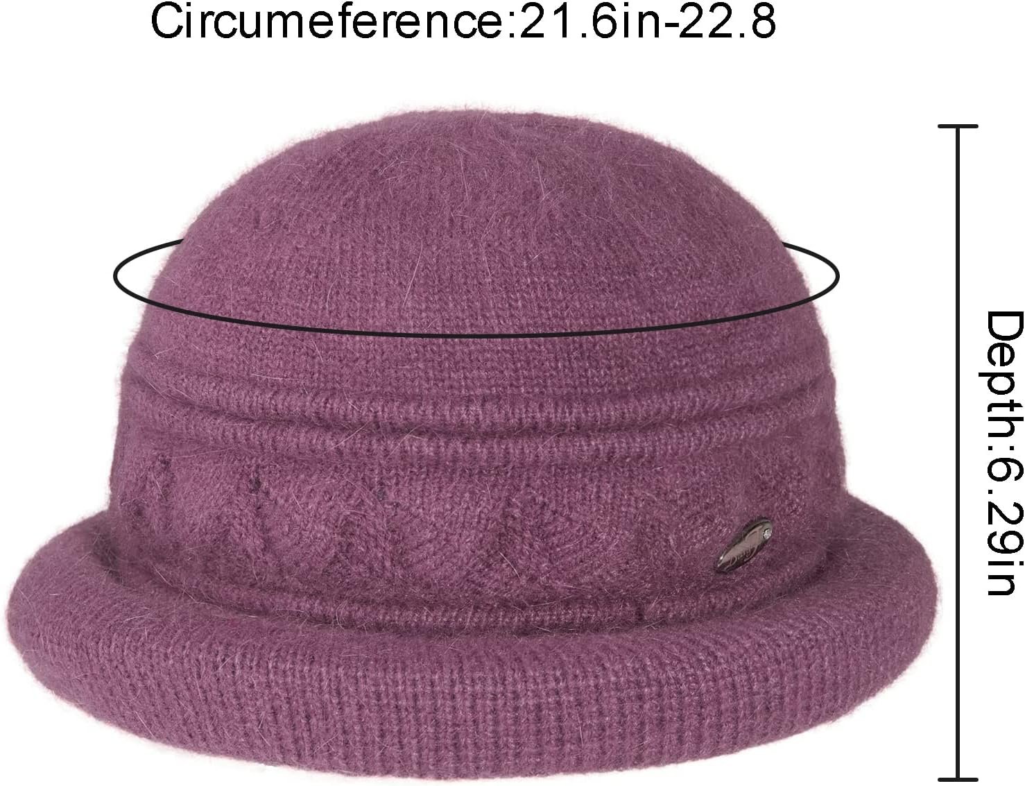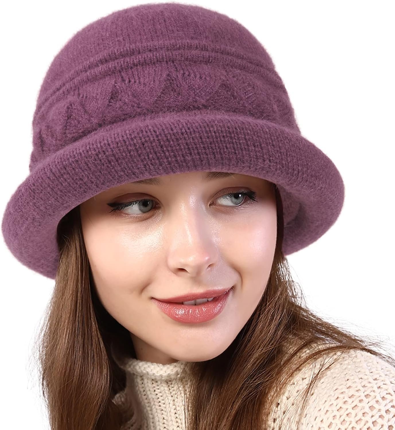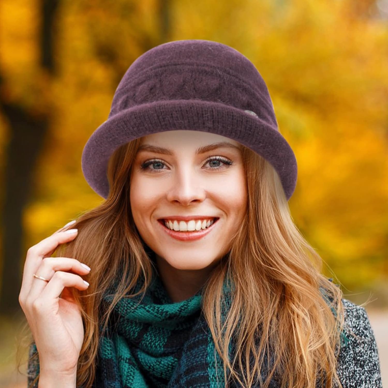Women Winter Knit 1920s Vintage Bucket Bowler Hat Round Brim Warm Hat