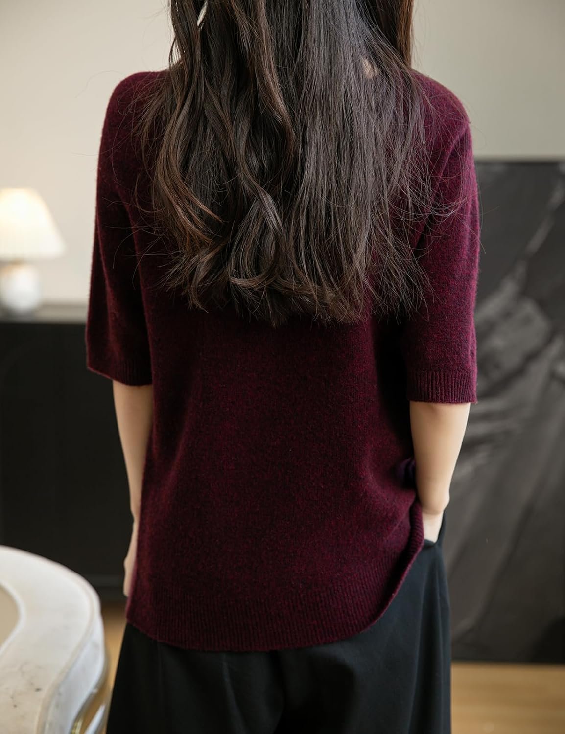 Women’s 100% Merino Wool Spring Fall Winter First-Line Ready to Wear Seamless Knit Crewneck Short Sleeve Sweater