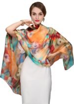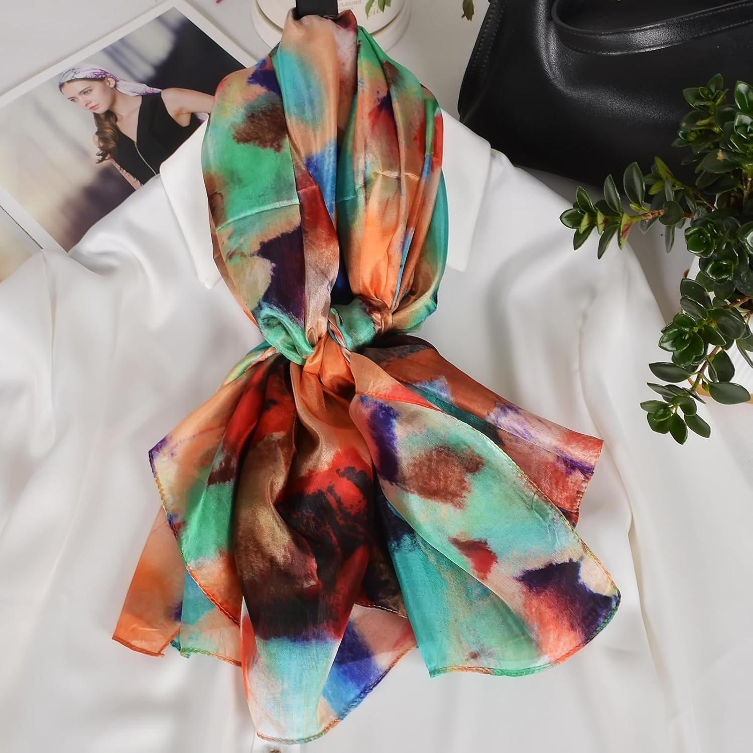 Women’s 100% Mulberry Silk Long Scarf-Floral Print Lightweight Scarves-Oblong Summer Travel Sunscreen Shawl 69″ x 43″
