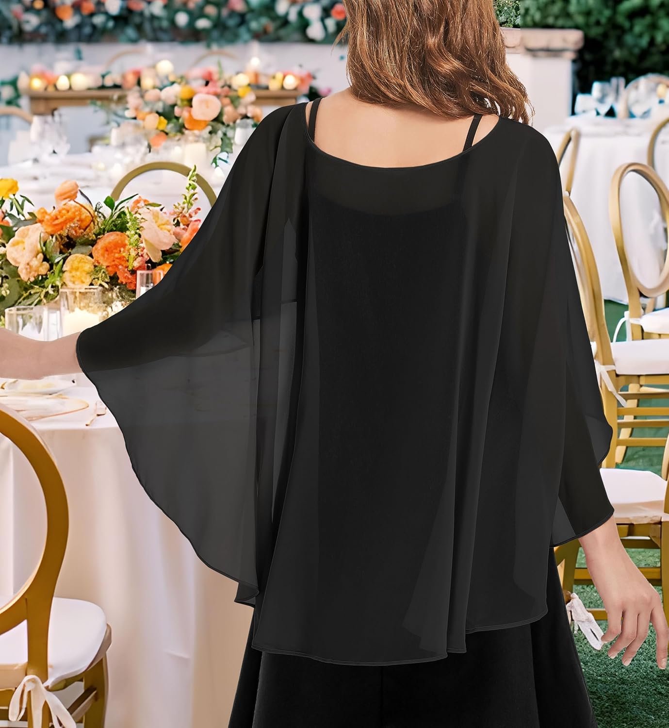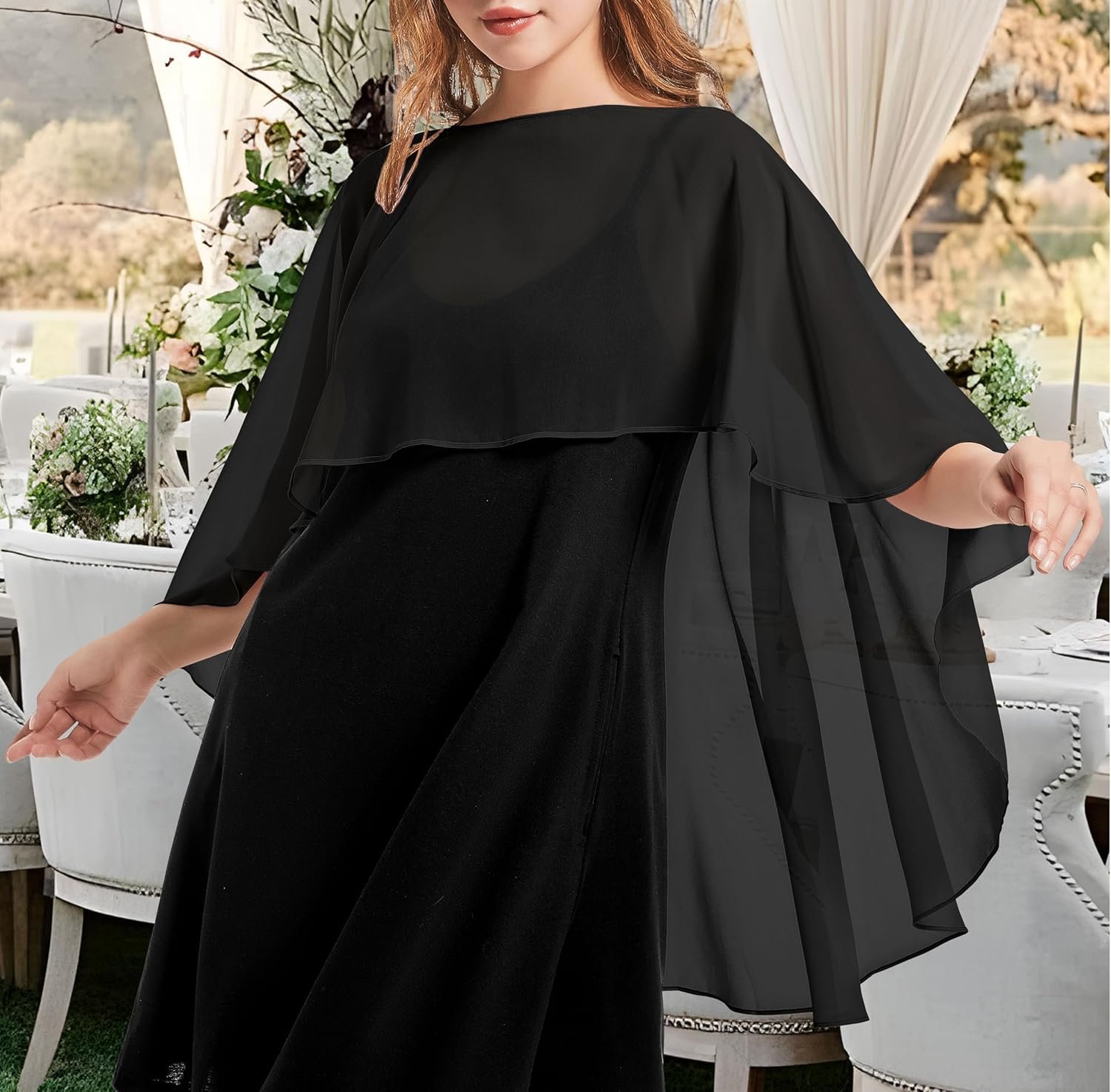 This capelet is designed to shield you from the cool evening breeze, making it good for chilly outdoor nights