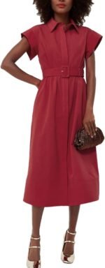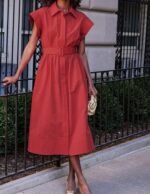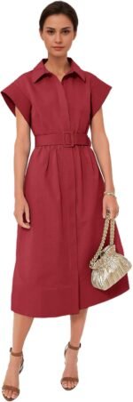 Short Wing Sleeve Buiness Midi Shirt Dress with Belt Elegant Dress