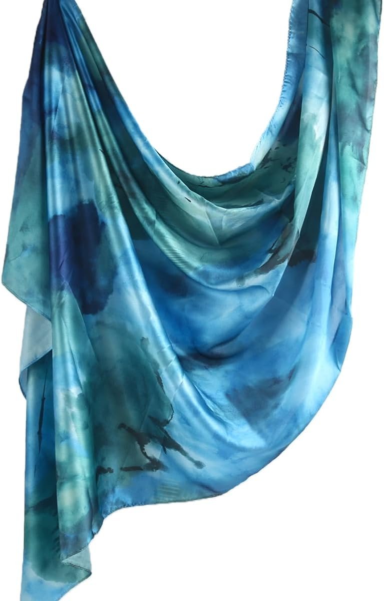 Women’s Hijab watercolor printed silk textured satin, Tie Dyed Ombre marble water printed women’s Shawl Hijab scarf