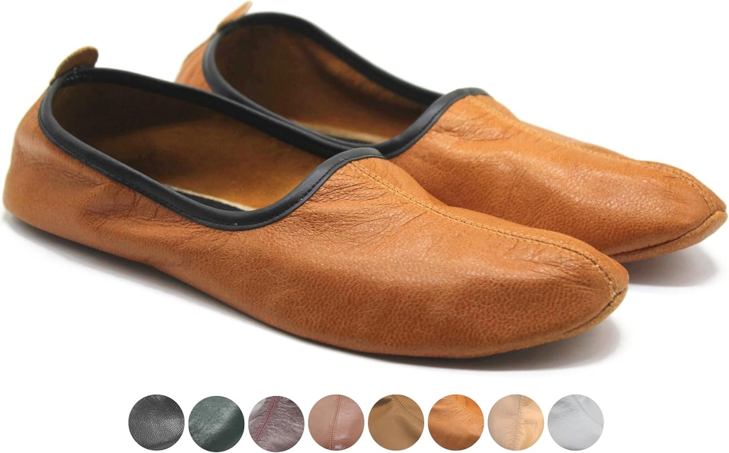 Womens Indoor Leather Slippers Antique Tan Traditional Babouche House Shoes Barefoot Moccasin