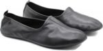 Women’s Indoor Leather Slippers Black Traditional Babouche House Shoes Moccasin