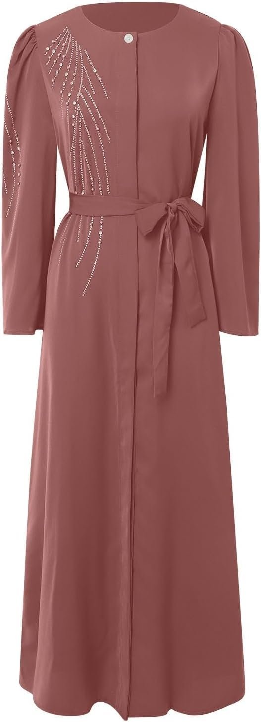 Womens Muslim Abaya Dress Beading Hot Drilling Ramadan Jilbab Casual Loose Middle Eastern Middle East Arabian Robe