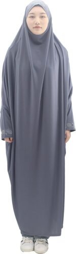 Women’s One-piece Prayer Dress Muslim Abaya Dress Islamic Maxi Abayas Kaftan with Hijab