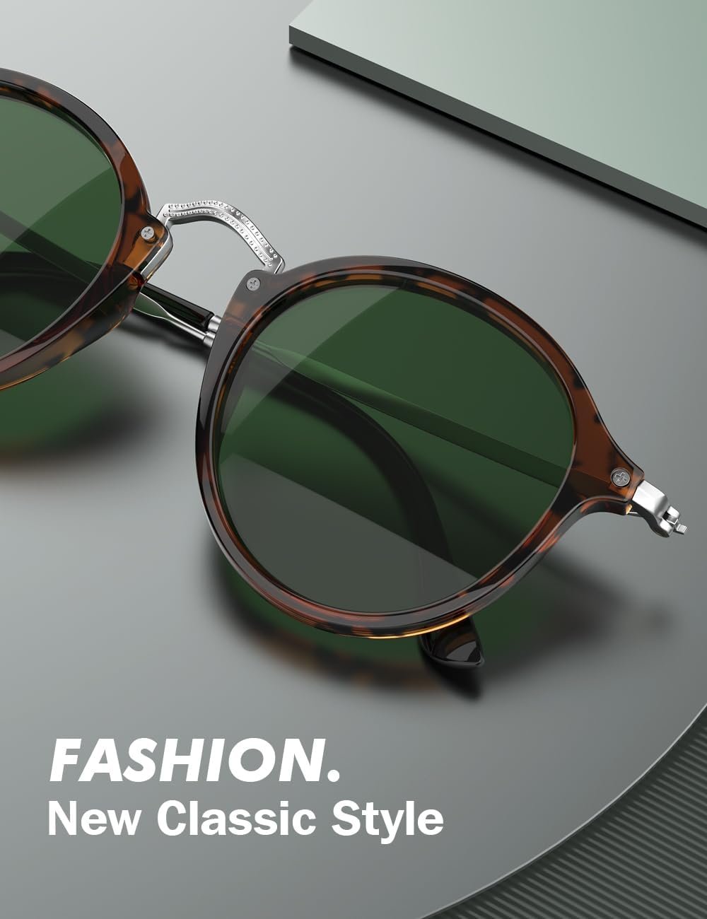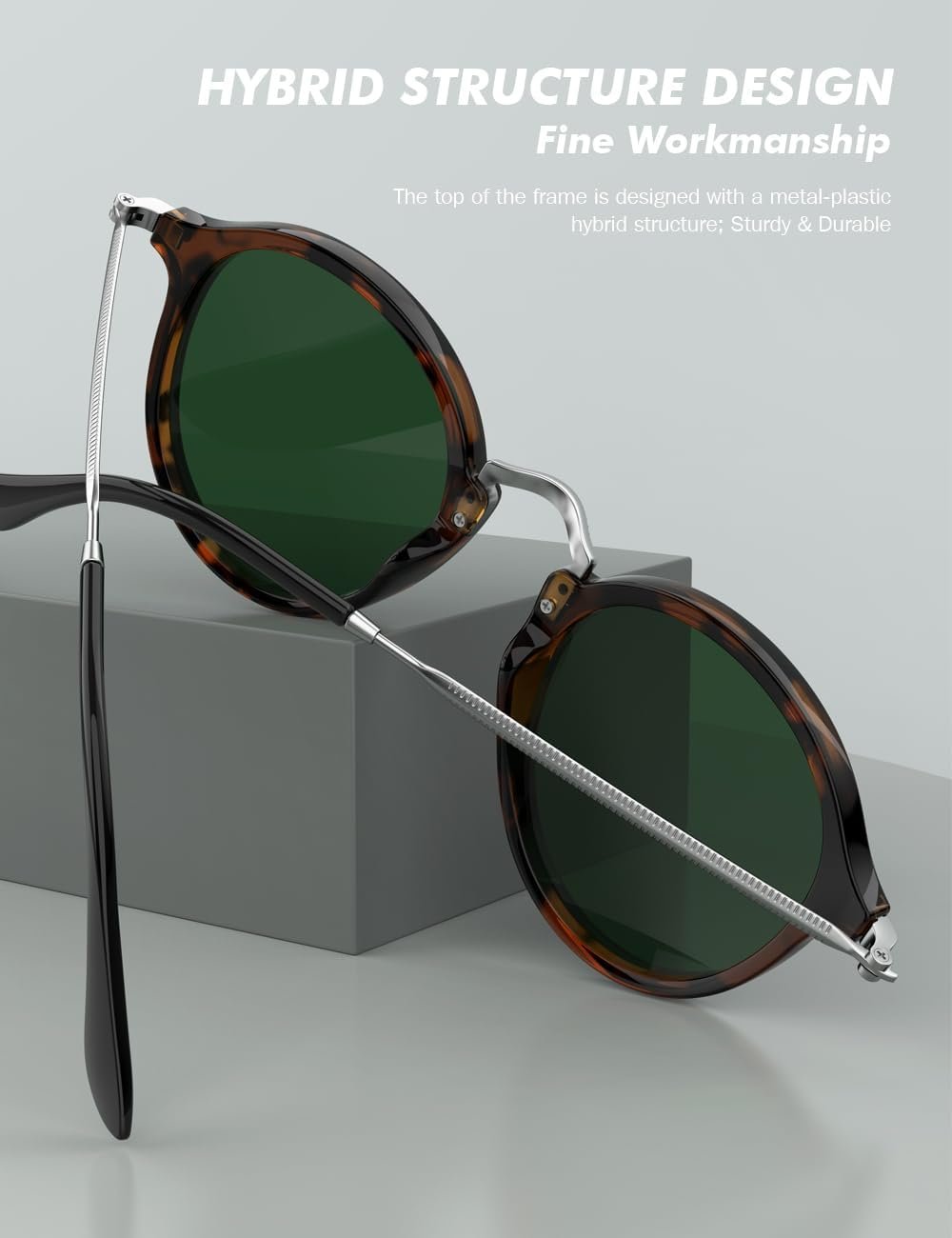 Women’s Retro Round Sunglasses – Polarized Anti Glare UV400 Protection Vintage Driving Shades