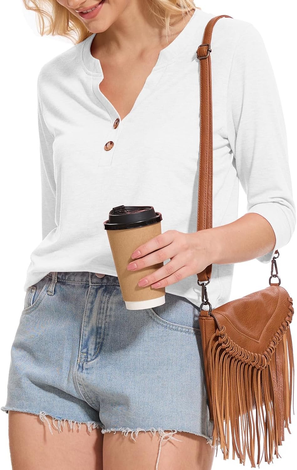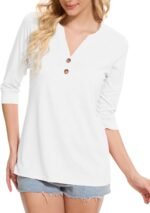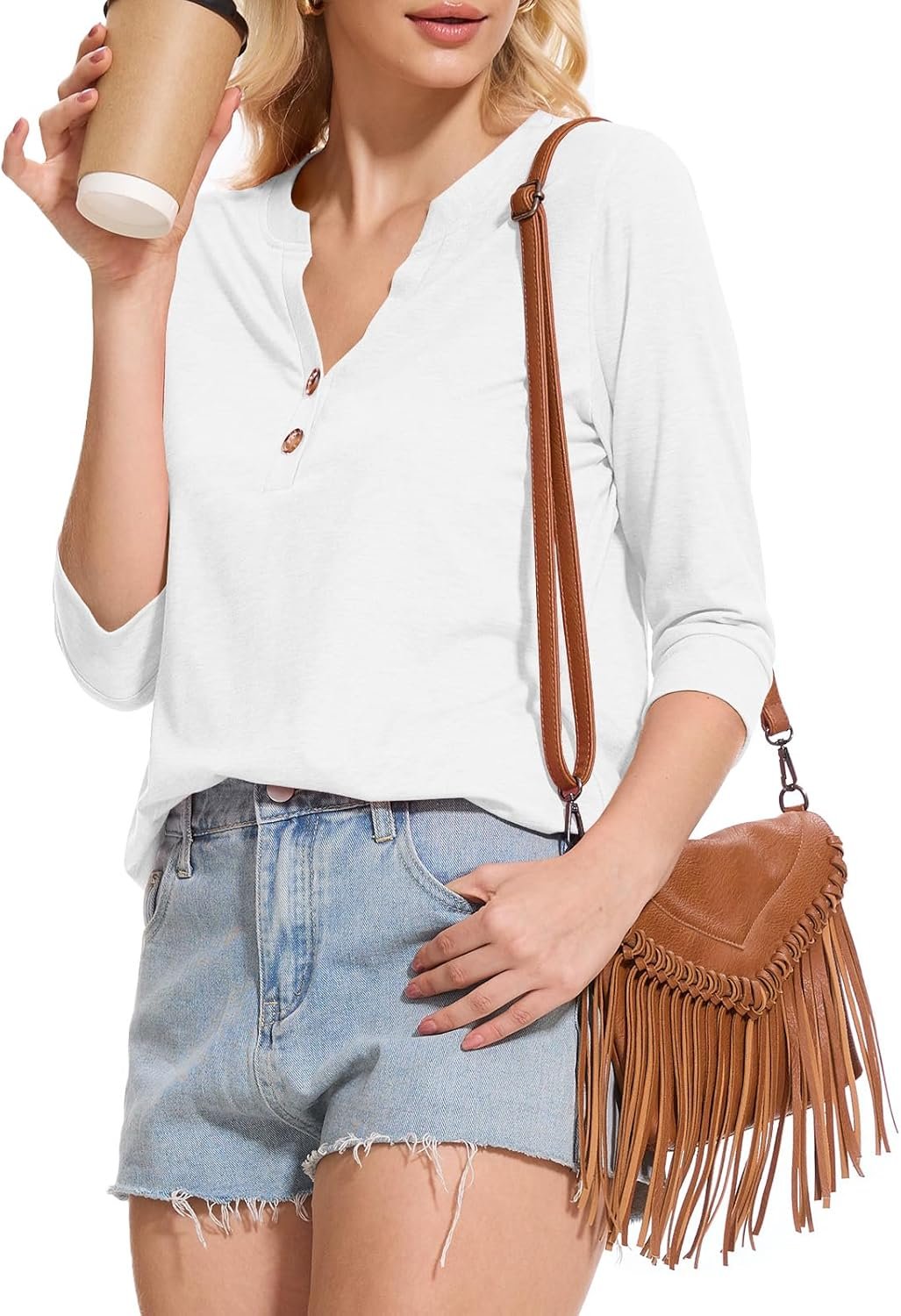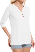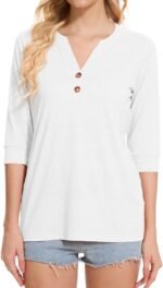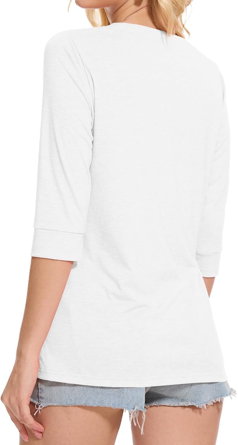 Womens Tops 3/4 Sleeve V Neck Button Down Shirts Business Casual Outfit Basic Tees Summer Top 2025