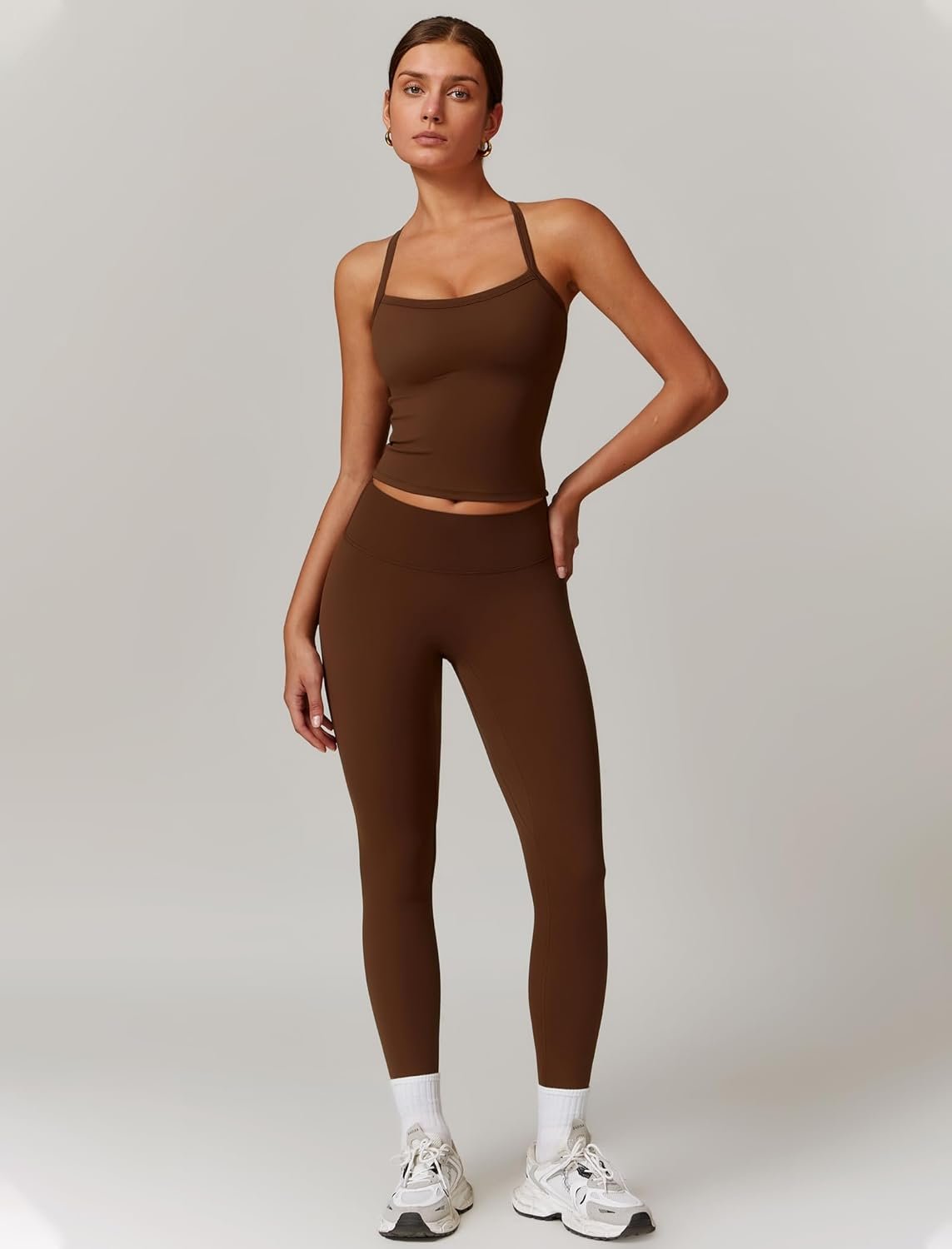 Womens Workout Sets Two Piece Cross Back Tank Top Matching High Waist Leggings Sets Gym Outfits Work Out Clothes