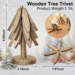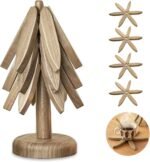 Wooden Tree Trivets Set for Kitchen and Dining Room, Like a Christmas Tree, Can Be Used for Kitchen Countertop Decoration – 4 Wooden Trivets + 1 Stand (Dark Walnut Color)