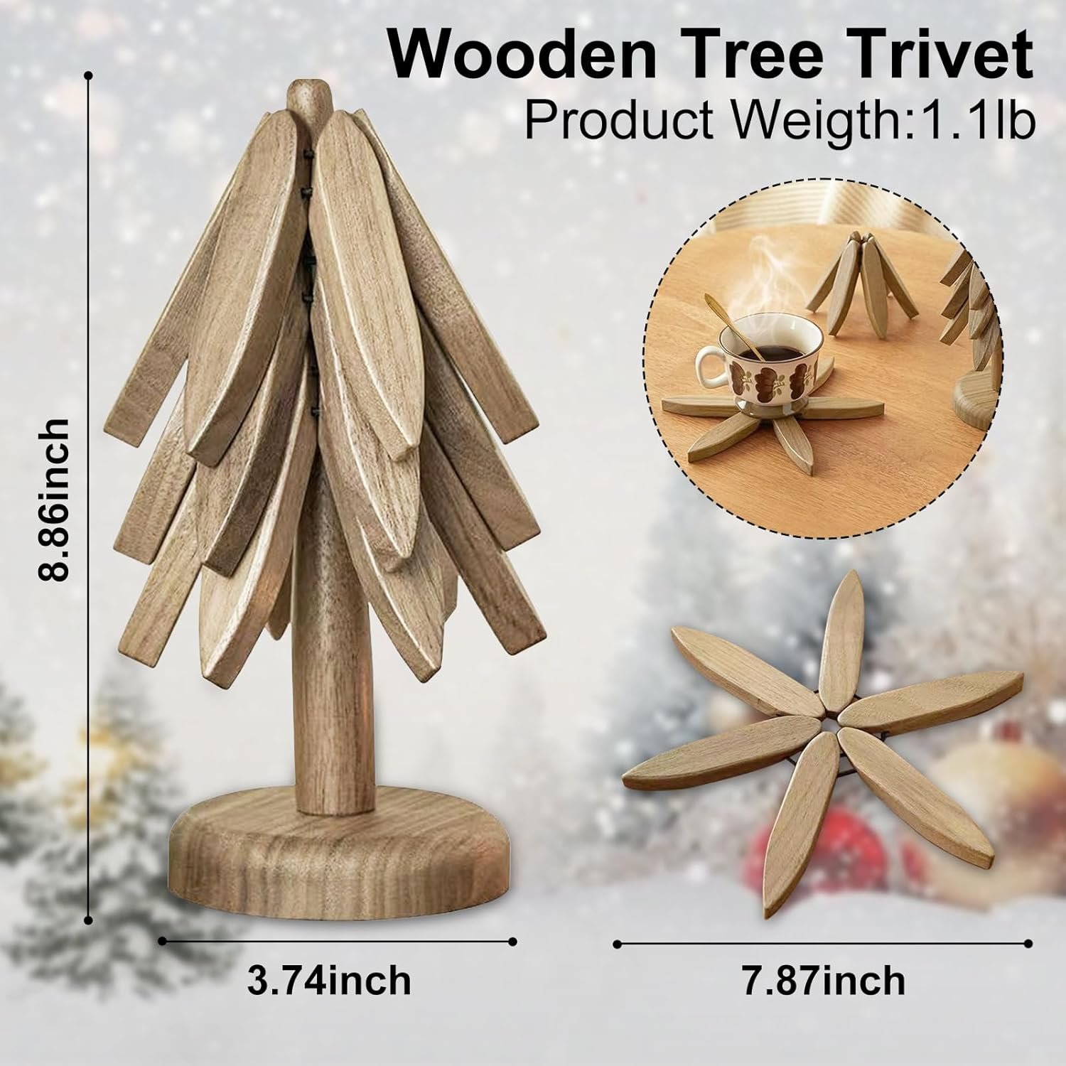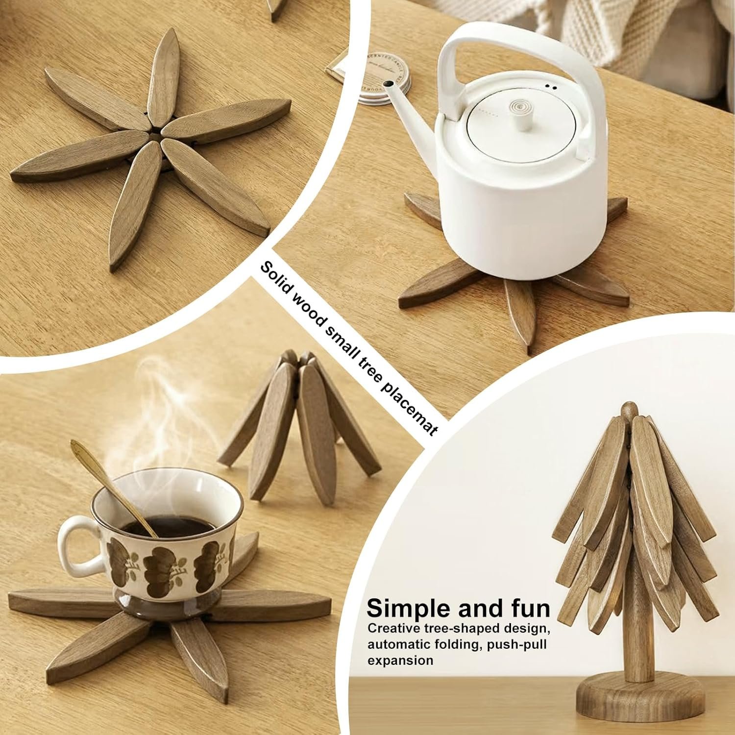 【Efficient heat insulation protection】 This wooden trivet tree has heat insulation and scalding resistance, which can effectively block the damage of high temperature to the desktop, and protect the desktop intimately, keeping it away from scald marks and damage