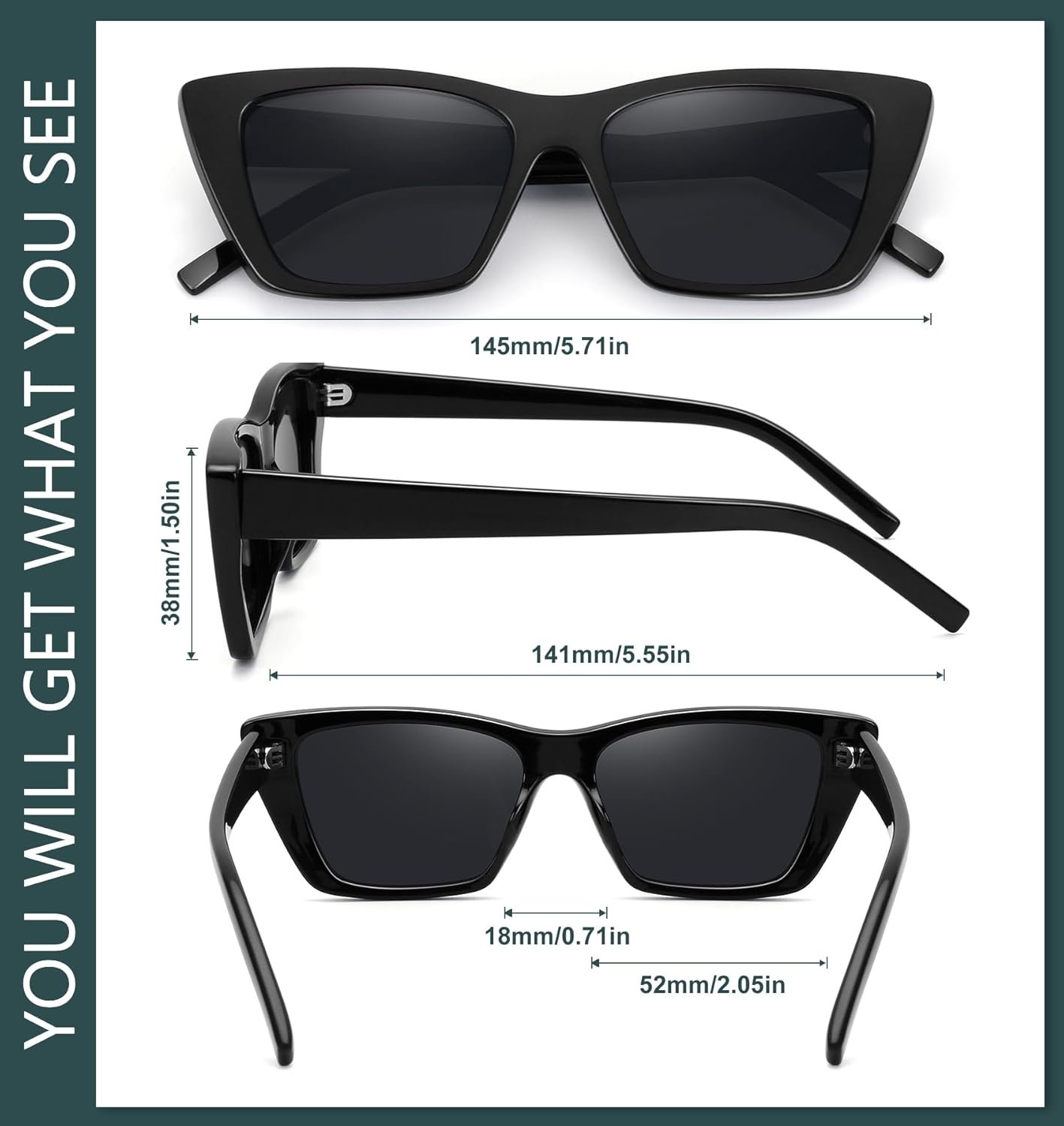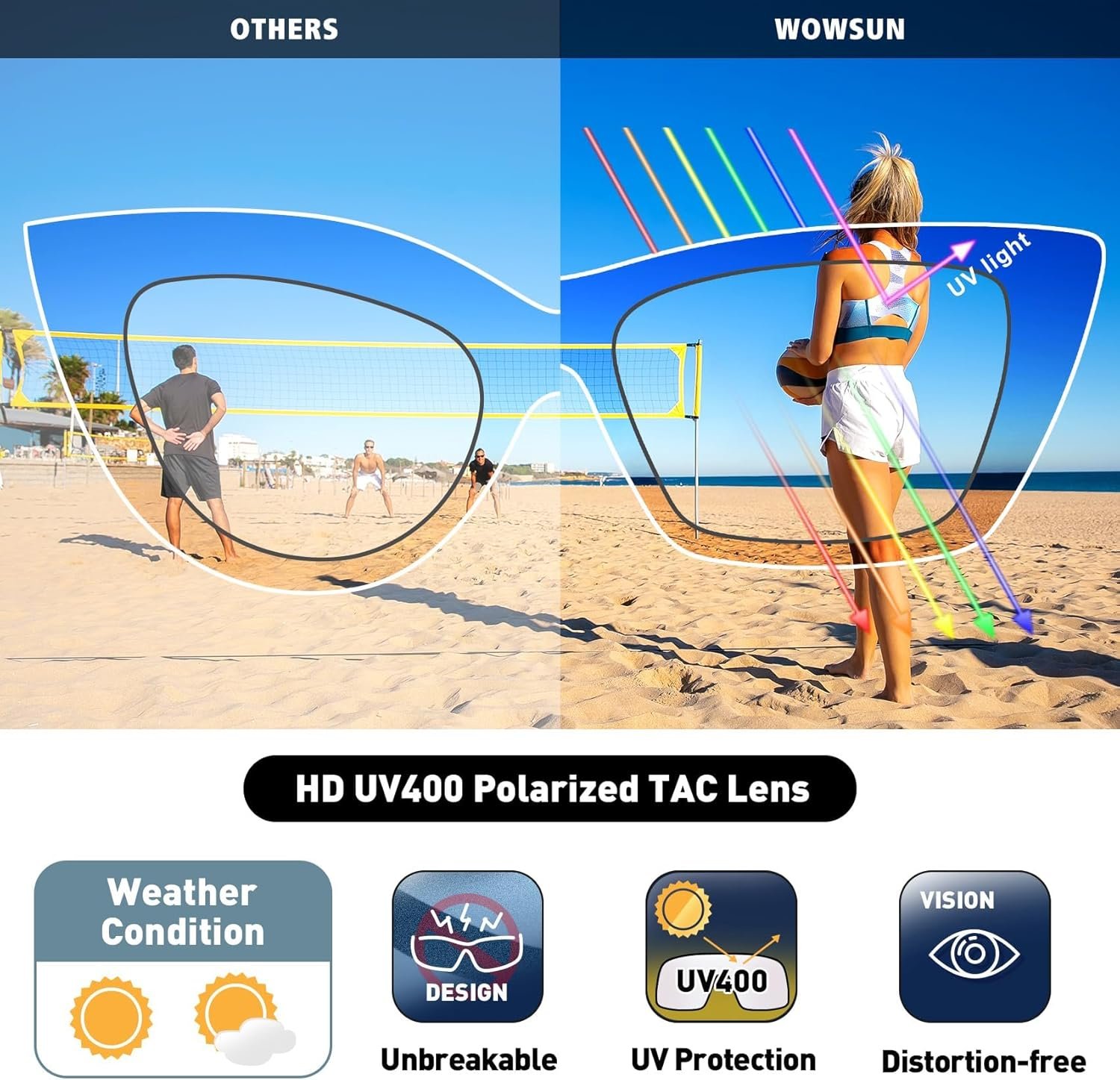 WOWSUN Narrow Small Vintage Polarized Cat Eye Sunglasses for Women