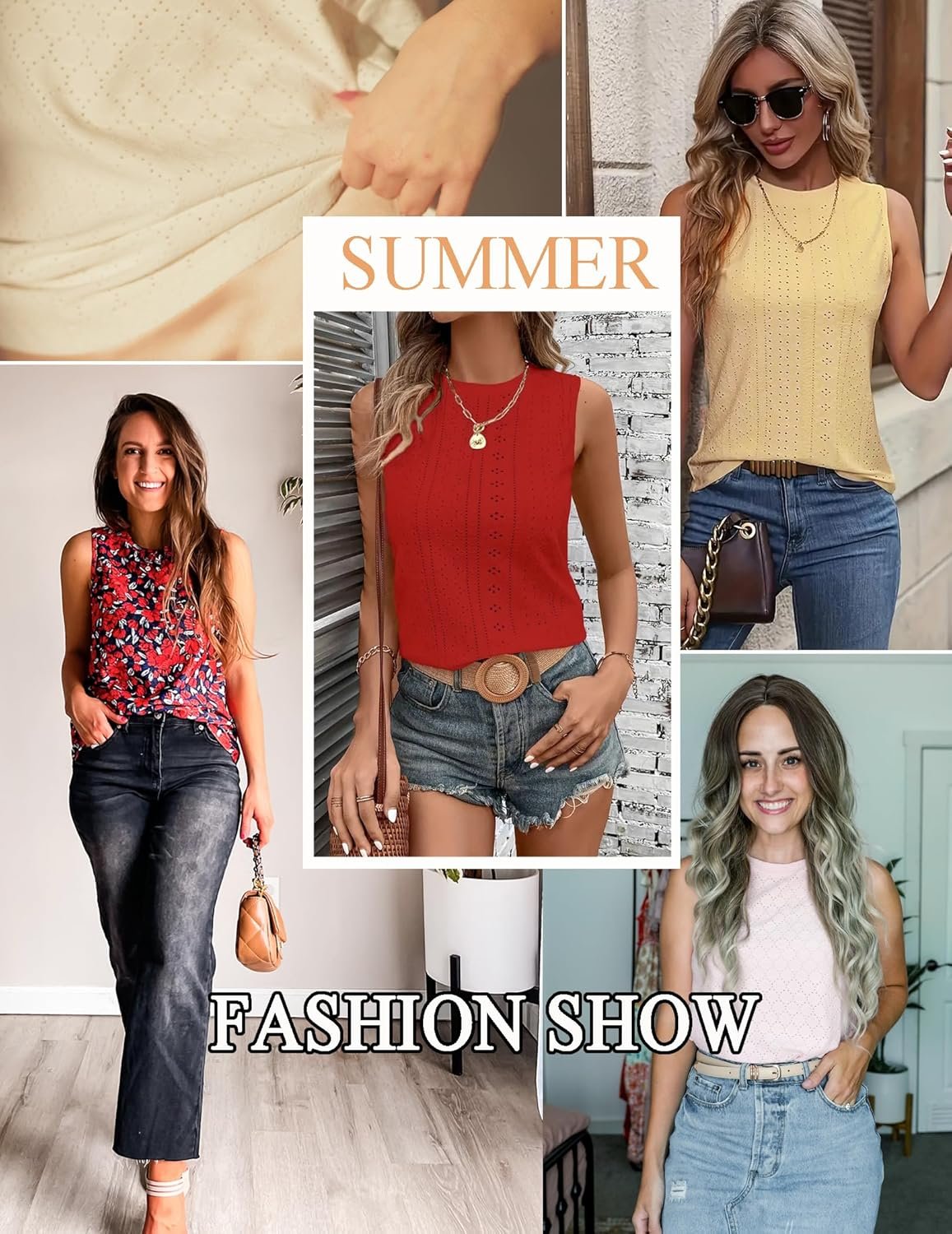 Zeagoo Tank Tops for Women Sleeveless Eyelet Shirts High Neck Cute Summer Top Loose Fit S-XXL