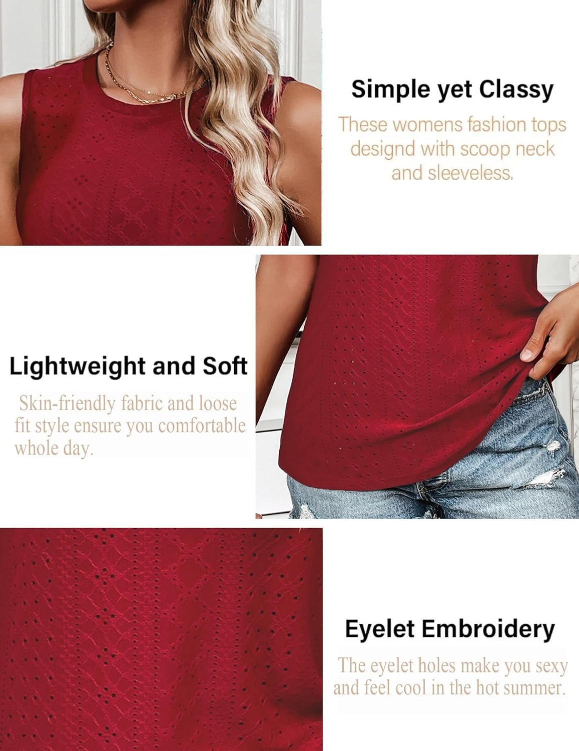 Zeagoo Womens Tank Tops Sleeveless Eyelet Embroidery Shirts Cute Summer Top
