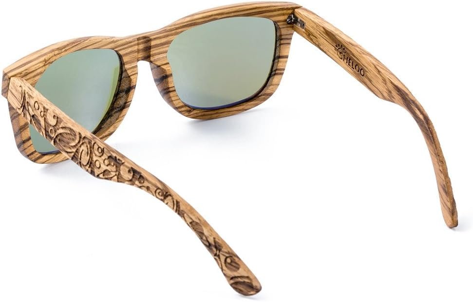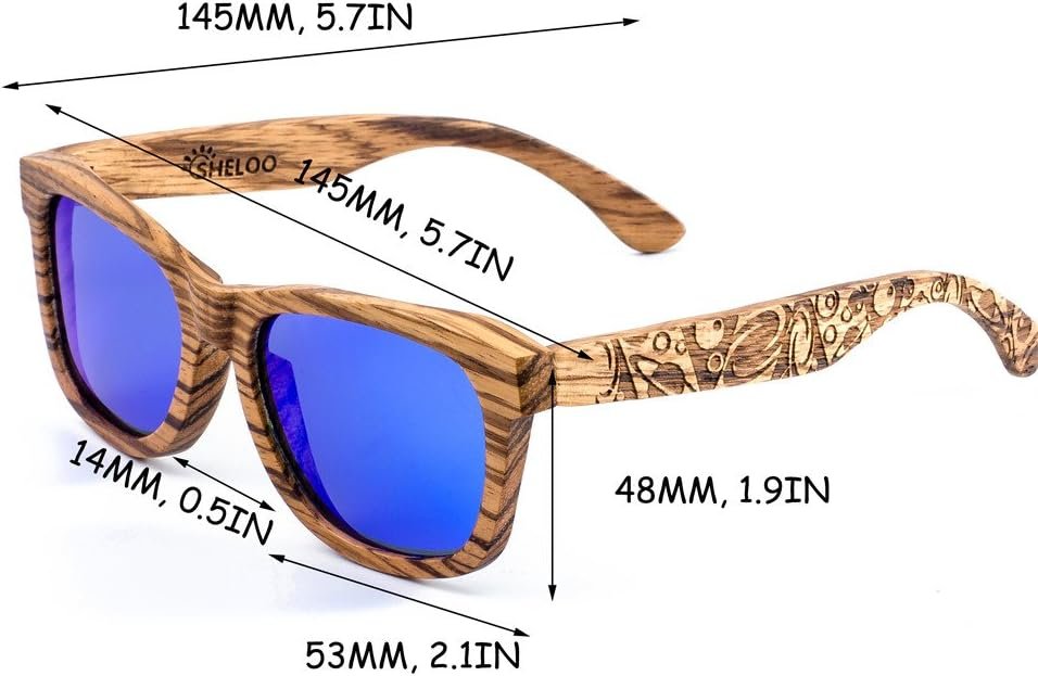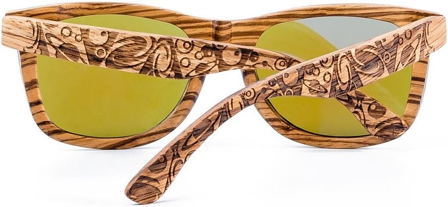 Zebra Wood Polarized Sunglasses Wooden Men & Women Retro Style 100% UV400 – Blue Lens Driving Hiking Fishing Resistant to Heat Resistant Swimming N1