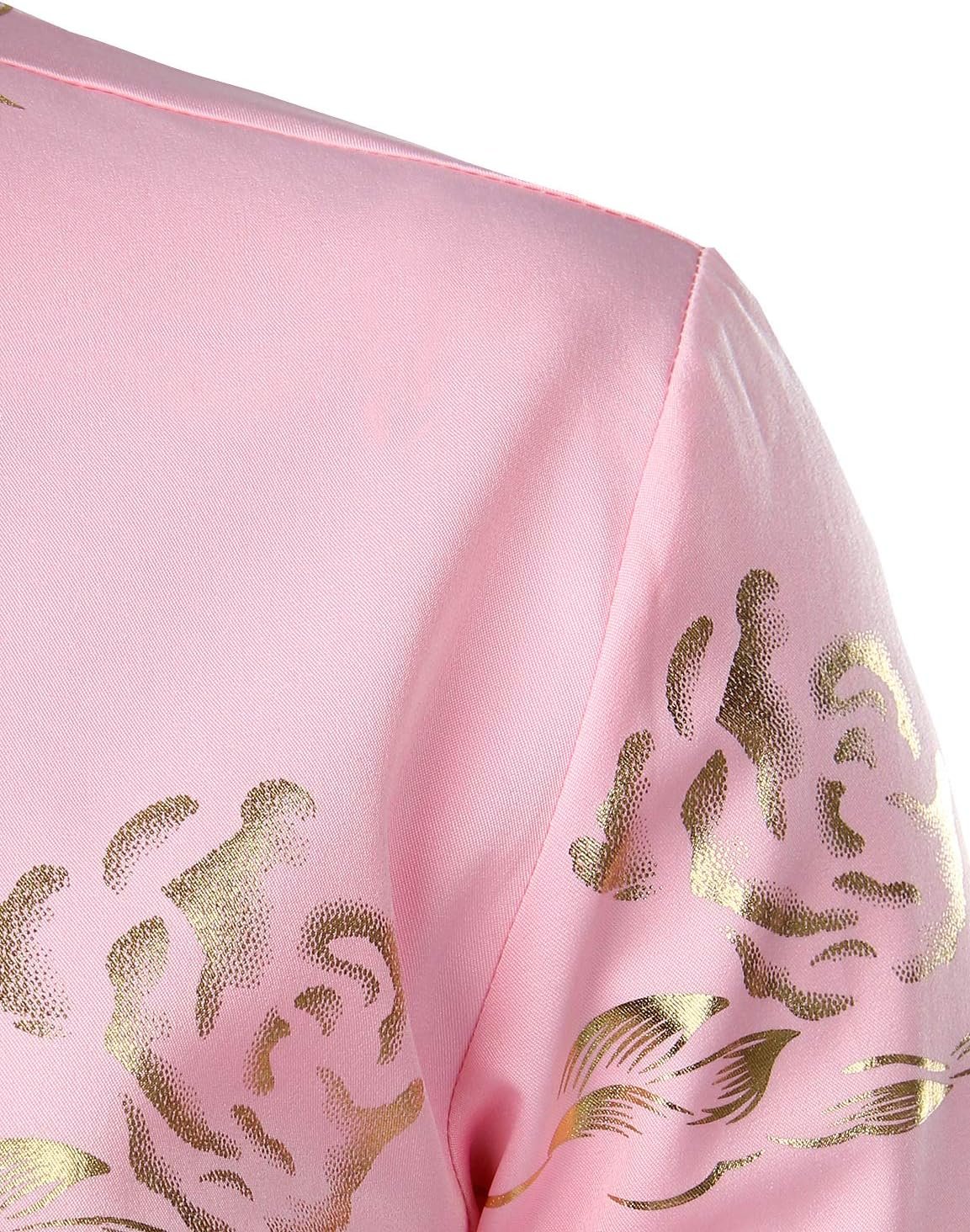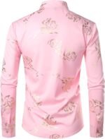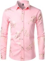 ZEROYAA Mens Hipster Gold Rose Printed Slim Fit Long Sleeve Dress Shirts/Prom Performing Shirts