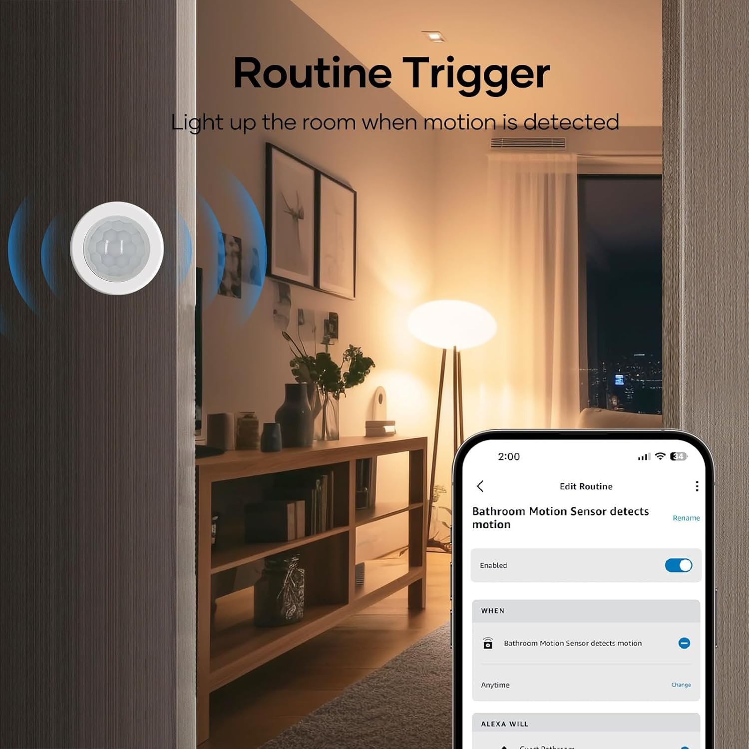 ✅ Smart Light Control: Works with smart lights or smart plugs connected to Alexa service, enabling you to create routines in the Alexa app to automatically turn them on when motion is detected, and turn them off after a specified period of inactivity.