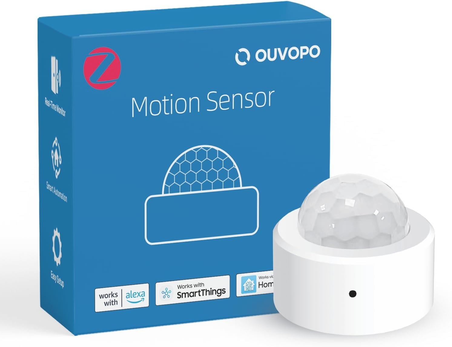 OUVOPO zigbee contact sensor is compatible with Alexa, SmartThings and Home Assistant, and it can be linked to these smart home systems to enable voice control and automation routines/scenes.