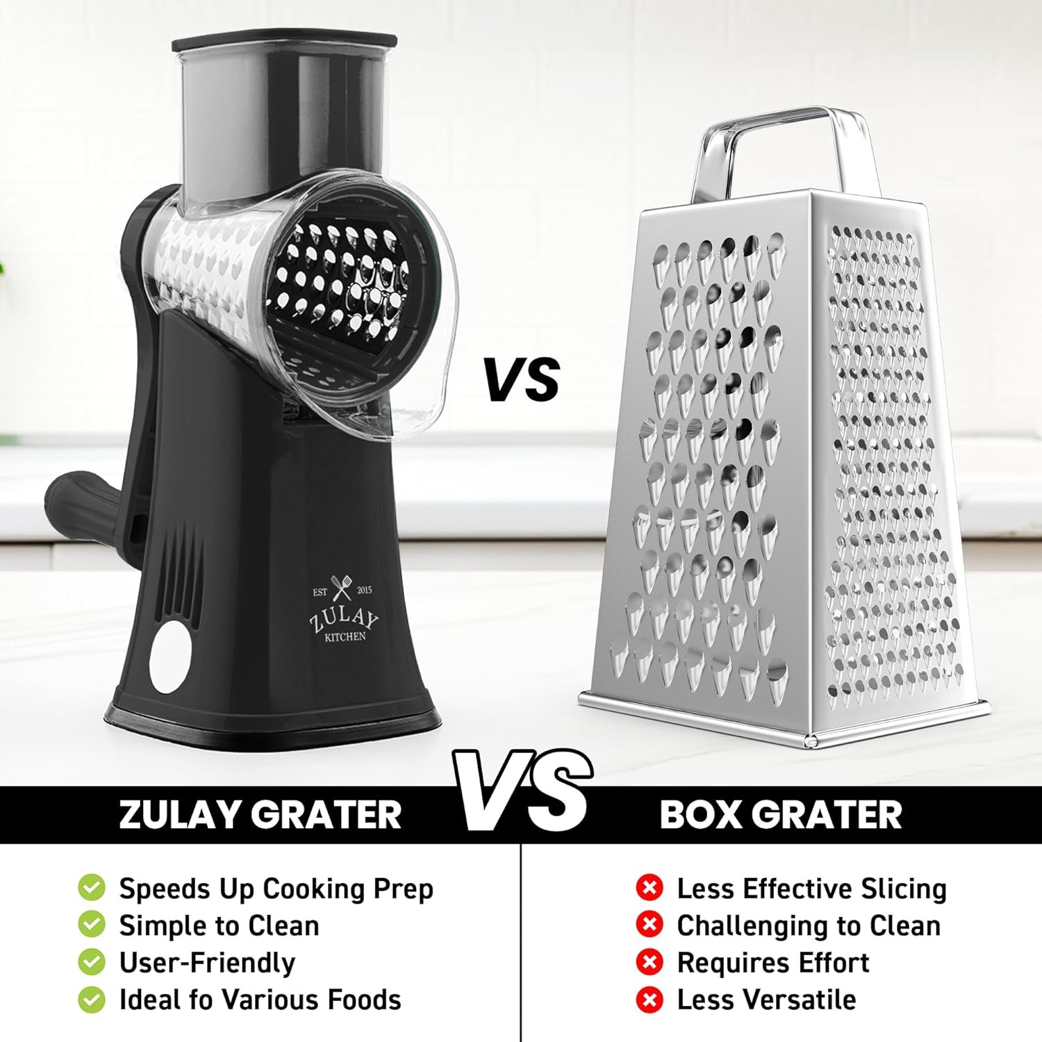 Zulay Kitchen Rotary Cheese Grater 5 Blade Cheese Shredder – Manual Hand Crank Cheese Grater With Reinforced Suction & 5 Interchangeable Drums – Easy to Use, Vegetable Chopper Round Mandoline Slicer