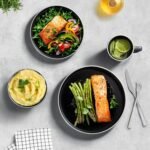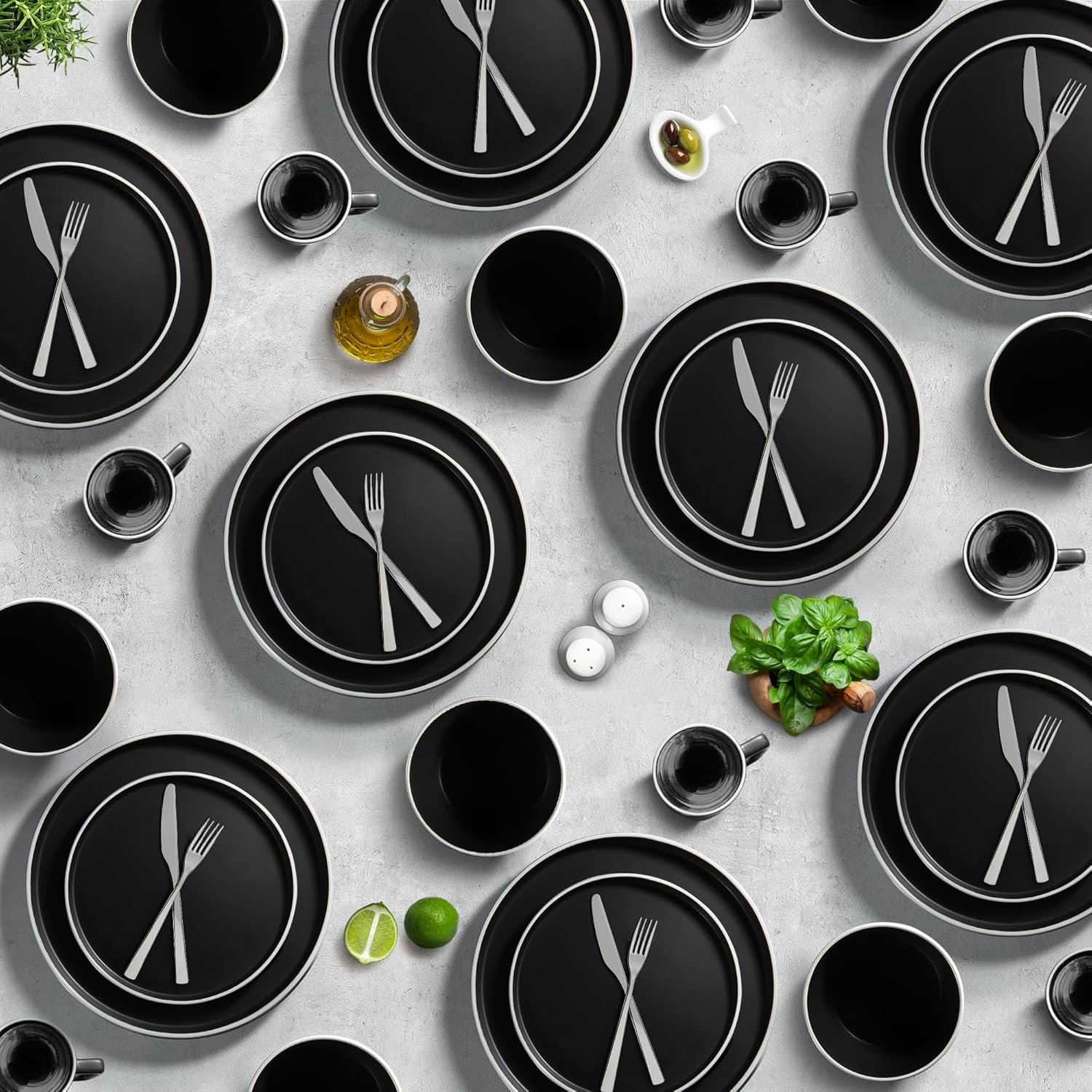 DISHWASHER & MICROWAVE SAFE: ​​Our black and white dinnerware sets are microwave and dishwasher safe, allowing you to heat your meals and clean up quickly without compromising on quality.