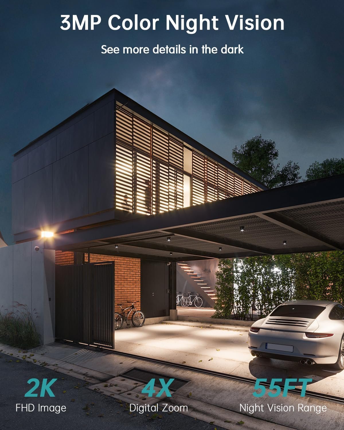 AOSU Security Cameras Wireless Outdoor Home System, True 2K HD Night Vision, No Subscription, 240-Day Battery Life, 166° Wide View, Spotlight & Siren Alarm, Motion Alert, Support 2.4G & 5G WiFi Router